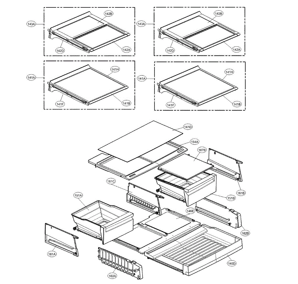 The Shelf Assembly is an OEM replacement part for LG refrigerators. It provides a movable shelf surface for organizing and storing items in the refrigerator or freezer compartment. Symptoms of a bad shelf assembly include: