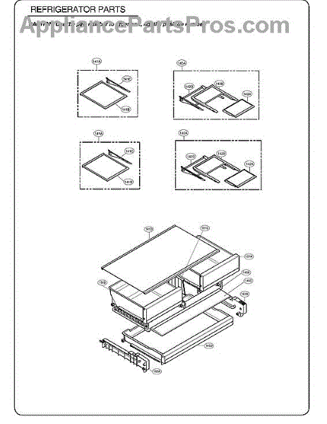 The Drawer Tray Assembly is an OEM replacement part for LG refrigerators. This is a lower freezer drawer. Causes of a bad tray assembly can include wear and tear over time, damage from overloading or improper use of the drawer, or issues with its sliding operation mechanism. Symptoms of a bad tray assembly include: