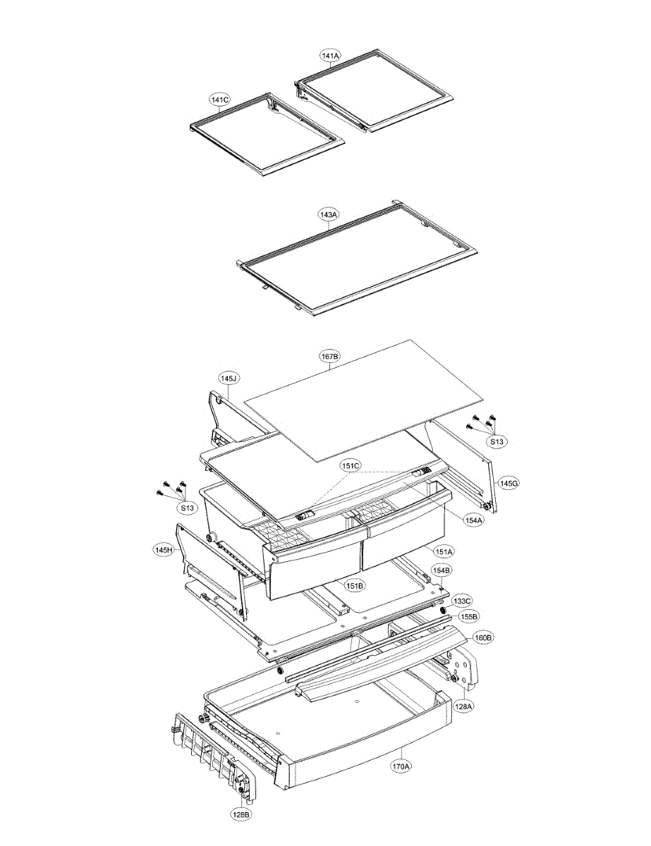 The Glass Shelf is an OEM replacement part for LG refrigerators. It provides sturdy, clear storage for items inside the refrigerator compartment. The glass shelf is designed to seamlessly integrate into the shelf system, dividing interior space for easy organization. Causes of a bad glass shelf can include cracks or chips from heavy items, damage due to impact or mishandling, or general wear and tear over time. Symptoms of a bad glass shelf include: