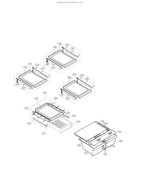 The Drawer Cover is an OEM part for LG refrigerators. It serves as a protective cover for the refrigerator's crisper drawers, providing a barrier that helps maintain optimal humidity levels and freshness for stored fruits and vegetables. The shelf measures approximately 19" in depth and 26" in width. This product does not include glass. As per the manufacturer's note, the original center support is not compatible with the updated crisper cover.
