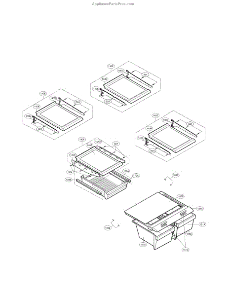 The Shelf Assembly is an OEM part for LG refrigerators. This assembly provides a sturdy and stable surface for storing food items within the refrigerator. It is designed to fit securely into the designated slots, ensuring efficient use of space and easy access to stored goods.