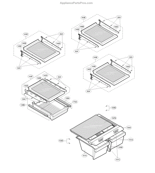 The Shelf Assembly is an OEM part for LG refrigerators. This assembly provides a sturdy and stable surface for storing food items within the refrigerator. It is designed to fit securely into the designated slots, ensuring efficient use of space and easy access to stored goods.