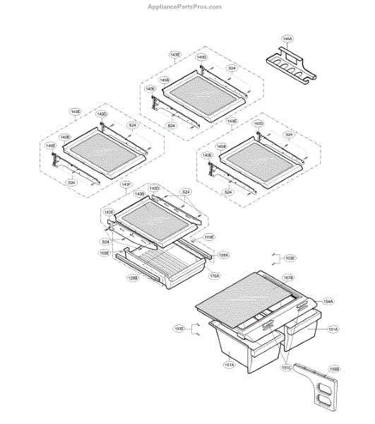 The Drawer Cover is an OEM part for LG refrigerators. It serves as a protective cover for the refrigerator's crisper drawers, providing a barrier that helps maintain optimal humidity levels and freshness for stored fruits and vegetables. The shelf measures approximately 19" in depth and 26" in width. This product does not include glass. As per the manufacturer's note, the original center support is not compatible with the updated crisper cover.
