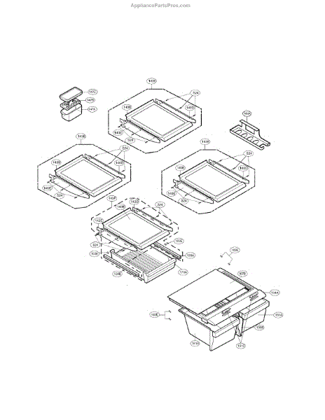 The Shelf Assembly is an OEM part for LG refrigerators. This assembly provides a sturdy and stable surface for storing food items within the refrigerator. It is designed to fit securely into the designated slots, ensuring efficient use of space and easy access to stored goods.