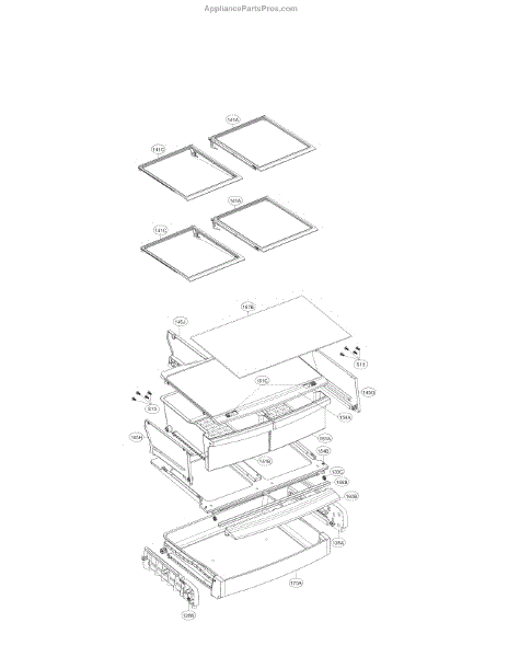 The Glass Shelf is an OEM replacement part for LG refrigerators. It provides sturdy, clear storage for items inside the refrigerator compartment. The glass shelf is designed to seamlessly integrate into the shelf system, dividing interior space for easy organization. Causes of a bad glass shelf can include cracks or chips from heavy items, damage due to impact or mishandling, or general wear and tear over time. Symptoms of a bad glass shelf include:
