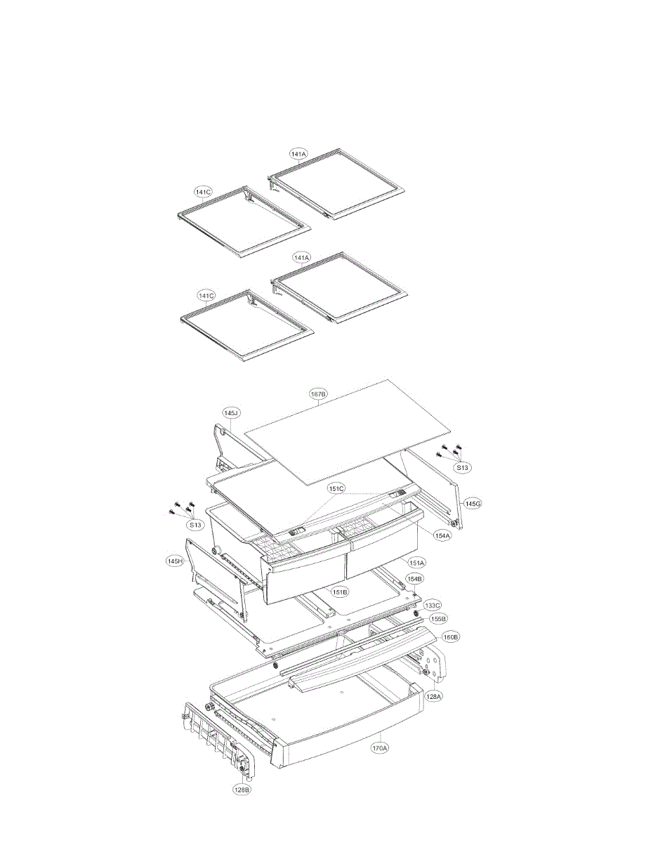 The Glass Shelf is an OEM replacement part for LG refrigerators. It provides sturdy, clear storage for items inside the refrigerator compartment. The glass shelf is designed to seamlessly integrate into the shelf system, dividing interior space for easy organization. Causes of a bad glass shelf can include cracks or chips from heavy items, damage due to impact or mishandling, or general wear and tear over time. Symptoms of a bad glass shelf include: