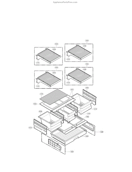 Refrigerator shelf assembly that replaces a damaged or missing internal shelf, restoring flat, secure storage for food and containers. Helps keep items level and organized inside the fridge. What it does