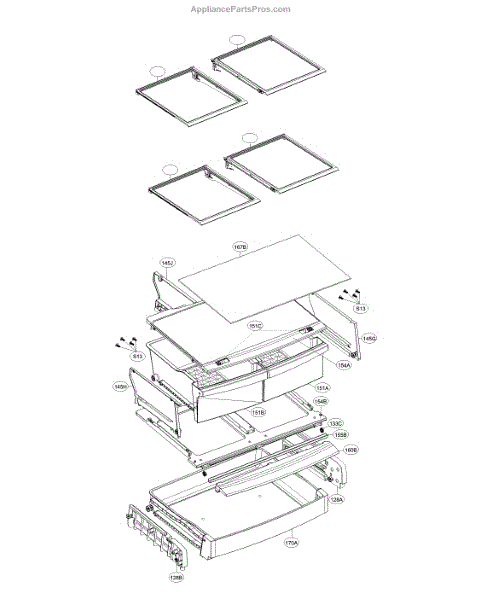 The Glass Shelf is an OEM replacement part for LG refrigerators. It provides sturdy, clear storage for items inside the refrigerator compartment. The glass shelf is designed to seamlessly integrate into the shelf system, dividing interior space for easy organization. Causes of a bad glass shelf can include cracks or chips from heavy items, damage due to impact or mishandling, or general wear and tear over time. Symptoms of a bad glass shelf include: