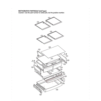 The Glass Shelf is an OEM replacement part for LG refrigerators. It provides sturdy, clear storage for items inside the refrigerator compartment. The glass shelf is designed to seamlessly integrate into the shelf system, dividing interior space for easy organization. Causes of a bad glass shelf can include cracks or chips from heavy items, damage due to impact or mishandling, or general wear and tear over time. Symptoms of a bad glass shelf include: