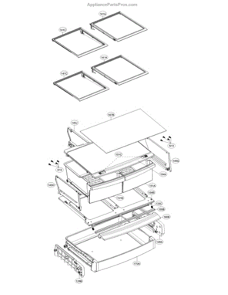 The Glass Shelf is an OEM replacement part for LG refrigerators. It provides sturdy, clear storage for items inside the refrigerator compartment. The glass shelf is designed to seamlessly integrate into the shelf system, dividing interior space for easy organization. Causes of a bad glass shelf can include cracks or chips from heavy items, damage due to impact or mishandling, or general wear and tear over time. Symptoms of a bad glass shelf include: