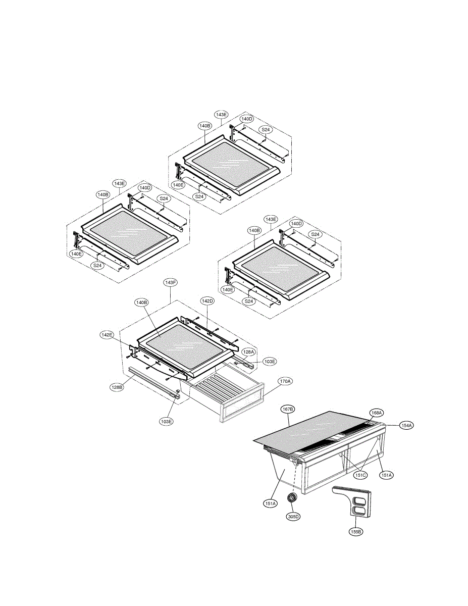 Replacement crisper drawer cover assembly for bottom-mount refrigerators. Restores the shelf above produce bins when cracked, broken, or damaged.