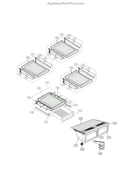 The Shelf Assembly is an OEM part for LG refrigerators. This assembly provides a sturdy and stable surface for storing food items within the refrigerator. It is designed to fit securely into the designated slots, ensuring efficient use of space and easy access to stored goods.