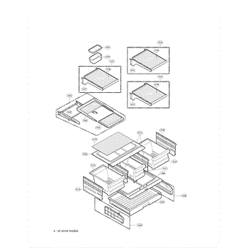 Refrigerator shelf assembly that replaces a damaged or missing internal shelf, restoring flat, secure storage for food and containers. Helps keep items level and organized inside the fridge. What it does