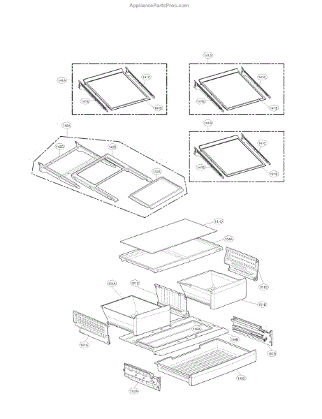 The Glass Shelf is an OEM part for LG refrigerators. It provides a durable surface for organizing and displaying items inside the refrigerator and freezer compartments. Causes of a faulty shelf can include chips or cracks developing from repeated loading and unloading of items over time. Temperature fluctuations may also cause warping. Symptoms of a problematic glass shelf include: