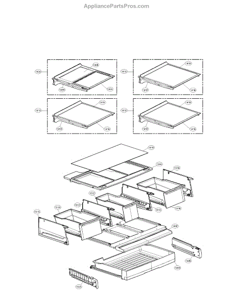 Replaces a cracked or broken tray cover above a storage drawer in your refrigerator. Restores a flat, supportive surface and smooth drawer operation.