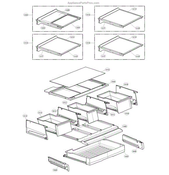The Shelf Assembly is an OEM replacement part for LG refrigerators. It provides a movable shelf surface for organizing and storing items in the refrigerator or freezer compartment. Symptoms of a bad shelf assembly include: