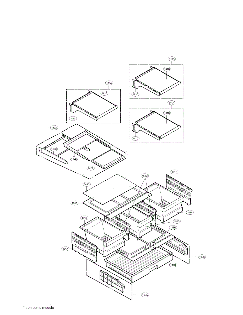 This vegetable tray assembly replaces the crisper shelf that supports produce in the refrigerator, restoring stable storage and organization for fruits and vegetables. It provides a solid shelf surface for the crisper area. What it does