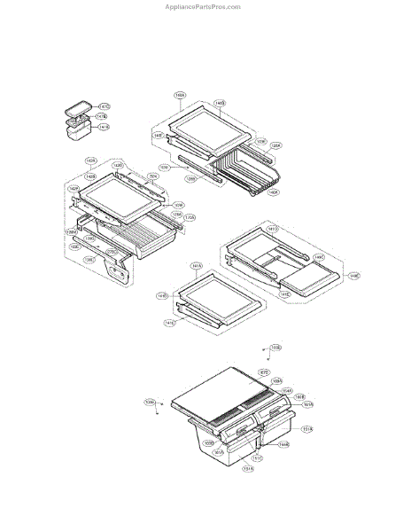 This shelf assembly replaces a damaged or missing refrigerator shelf to restore usable storage space and keep food organized. It provides a stable surface for holding containers and helps maintain proper airflow inside the compartment. What it does: