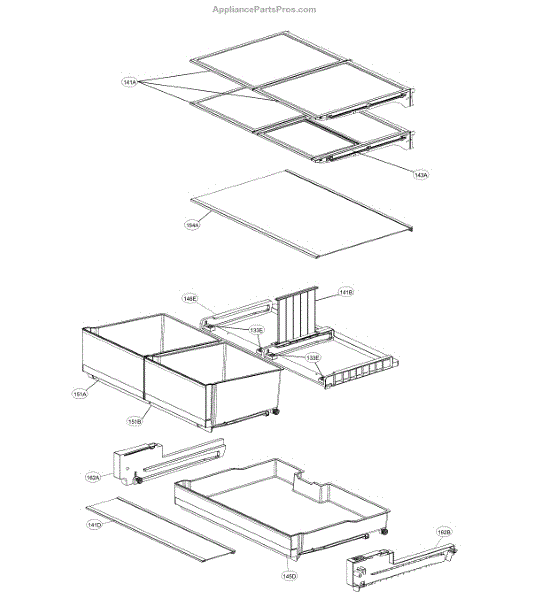 The Shelf Assembly is an OEM replacement part for LG refrigerators. It provides a movable shelf surface for organizing and storing items in the refrigerator or freezer compartment. Symptoms of a bad shelf assembly include: