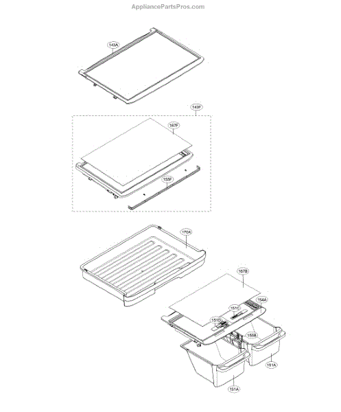 Causes of a bad shelf assembly can include regular wear and tear, overloading the shelf with heavy items, or accidental impacts that can cause cracks or breaks. A compromised shelf can reduce the overall storage efficiency and safety of the refrigerator.