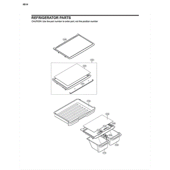 The Shelf Assembly is an OEM component for LG refrigerators. It comprises adjustable glass shelves that fit inside the refrigerator and freezer compartments. These shelves provide flexible storage and organization options for various food items.