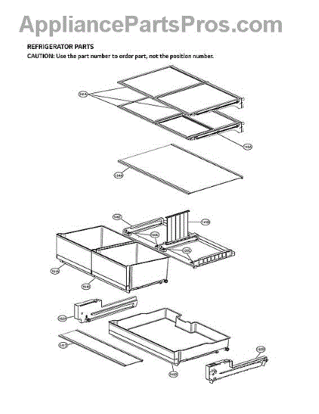 The Shelf Assembly is an OEM replacement part for LG refrigerators. It provides a movable shelf surface for organizing and storing items in the refrigerator or freezer compartment. Symptoms of a bad shelf assembly include:
