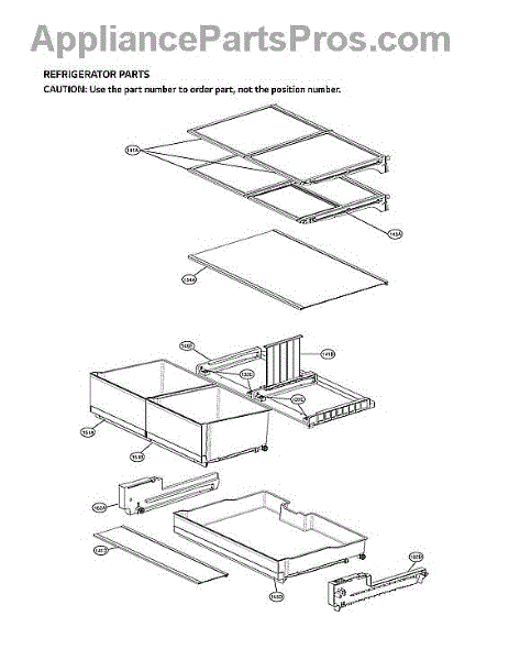 The Shelf Assembly is an OEM replacement part for LG refrigerators. It provides a movable shelf surface for organizing and storing items in the refrigerator or freezer compartment. Symptoms of a bad shelf assembly include: