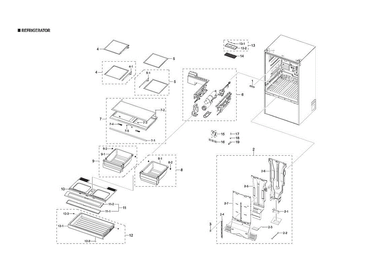 Complete pantry drawer assembly for bottom-mount refrigerators. Replaces cracked, broken, or damaged drawer units. Includes full assembly for easy installation.