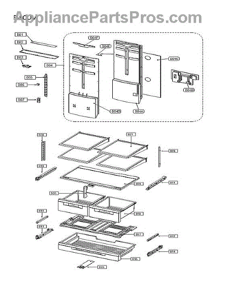 Parts for Winia WRFS26ABTD: Refrigerator Room Parts