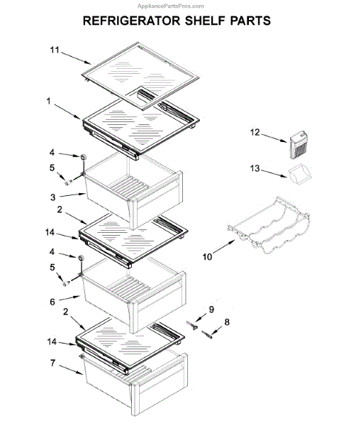 Replacement shelf cover for side-by-side refrigerators. Installs over refrigerator shelf frame. Replace if cracked, broken, or discolored.