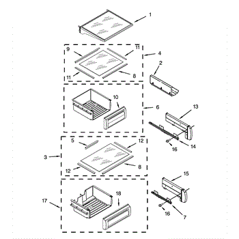 This crisper cover assembly replaces the removable shelf over the refrigerator crisper bin to restore a flat storage surface and help keep produce organized. It provides a stable surface for items above the crisper and contains spills. What it does