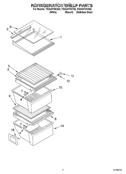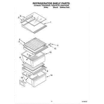 Parts for Estate TS25AFXKQ02: 03 - Refrigerator Shelf Parts