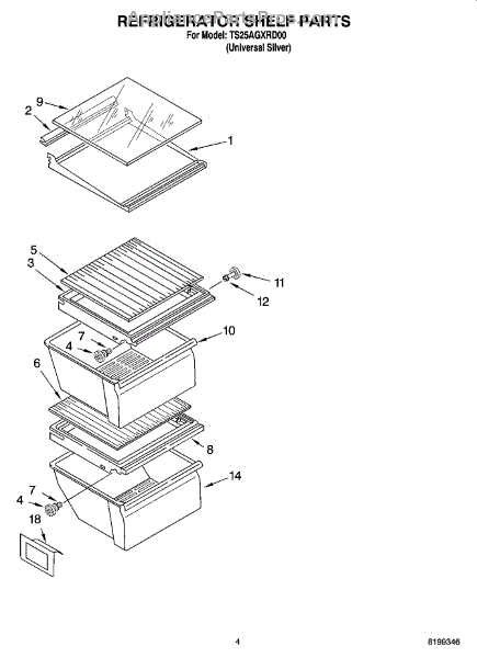 Parts for Estate TS25AGXRD00: 03 - Refrigerator Shelf Parts