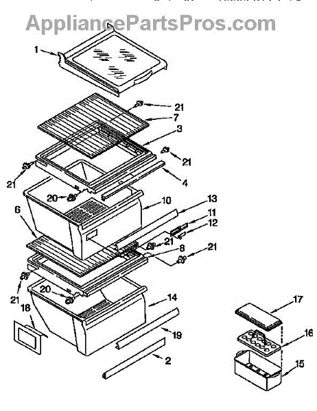 Replacement glass shelf for refrigerator interior storage. Installs in shelf frame to hold food items. Order if original is cracked, shattered, or broken.