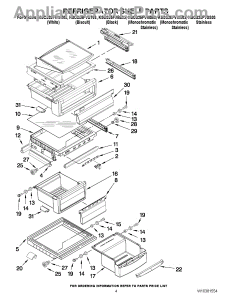 Parts for Kitchenaid KSCS25FVWH03: 03 - Refrigerator Shelf Parts