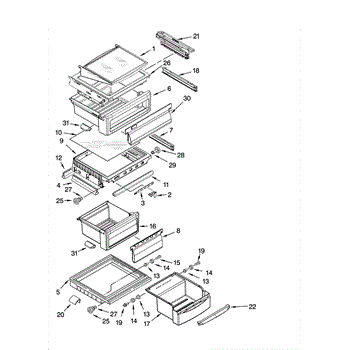 The Refrigerator Shelf is an OEM part for Whirlpool refrigerators. It provides storage space within the refrigerator, helping to organize and support various food items. The shelf is designed to fit securely and withstand the weight of stored items, ensuring optimal use of the refrigerator's interior space.