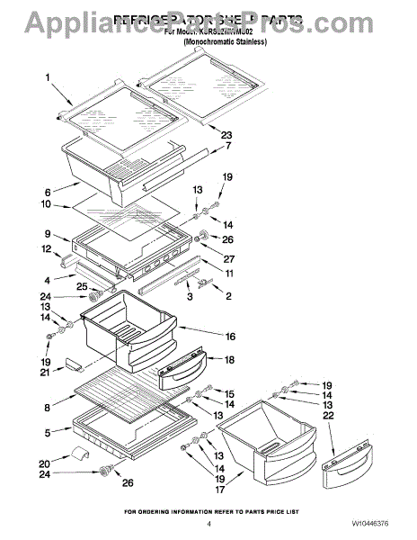 Causes of a bad shelf can be normal wear and tear over time from repeated removal and washing. Accidental drops or impact damage may also affect structural integrity. This OEM Whirlpool part can also be used on Maytag, KitchenAid, Jenn-Air, Amana, Magic Chef, Admiral, Norge, Roper, and Kenmore/Sears brand appliances.