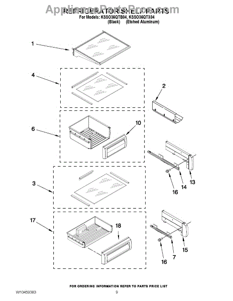 Parts for Kitchenaid KSSO36QTX04: 07 - Refrigerator Shelf Parts