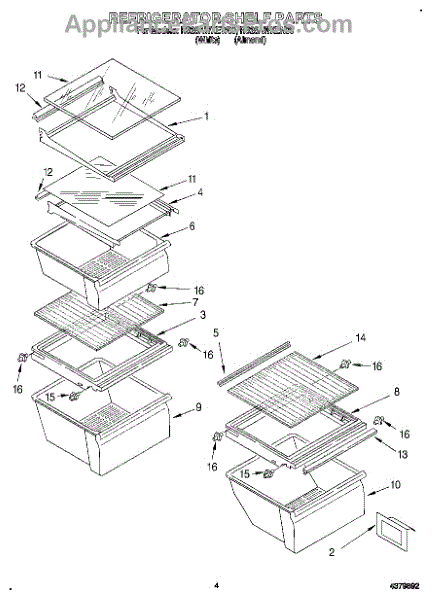 Parts for Roper RS25AWXEN00: 03 - Refrigerator Shelf Parts