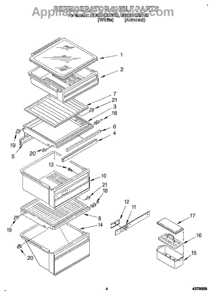 Parts for Whirlpool 3ED22DQXBW00: 03 - Refrigerator Shelf Parts