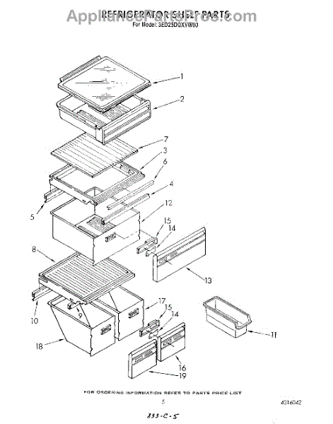 Parts for Whirlpool 3ED25DQXVW00: 04 - Refrigerator Shelf Parts