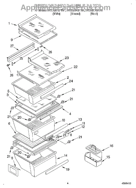 Parts for Whirlpool 3VED29DQFN01: 03 - Refrigerator Shelf Parts