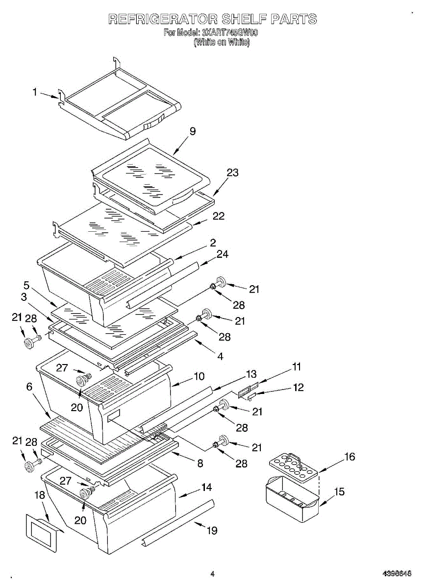 Parts for Whirlpool 3XART745GW00: 03 - Refrigerator Shelf Parts