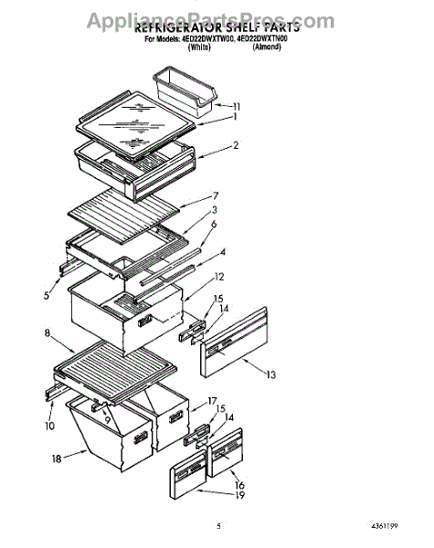 Parts for Whirlpool 4ED22DWXTG00: 04 - Refrigerator Shelf Parts