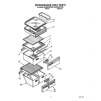 Parts for Whirlpool 4ED22DWXTN00: 04 - Refrigerator Shelf Parts