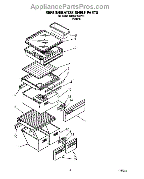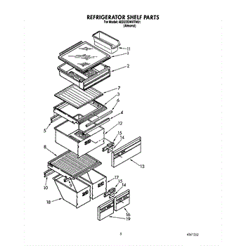 Parts for Whirlpool 4ED22DWXTN01: 04 - Refrigerator Shelf Parts