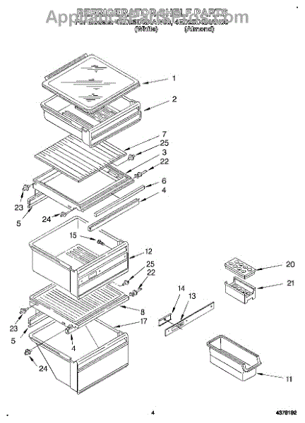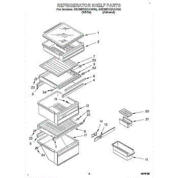 Parts for Whirlpool 4ED25DQXAN00: 03 - Refrigerator Shelf Parts
