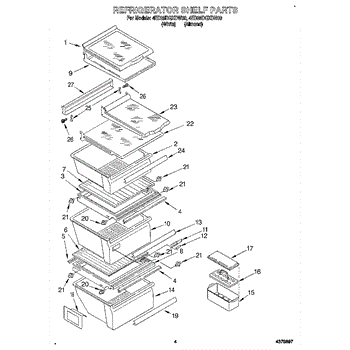 Parts for Whirlpool 4ED25DQXDW00: 03 - Refrigerator Shelf Parts