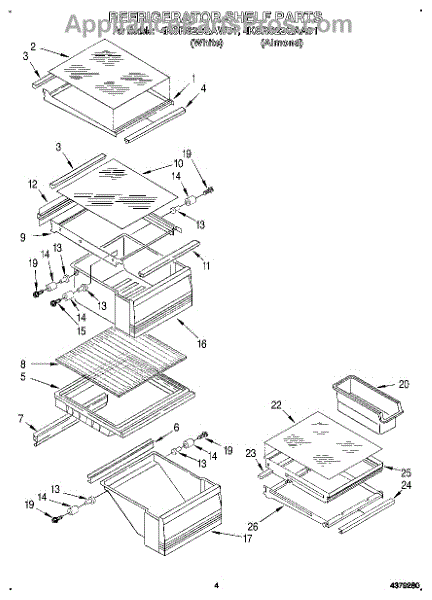 Parts for Whirlpool 4KSRS22QAA01: 03 - Refrigerator Shelf Parts