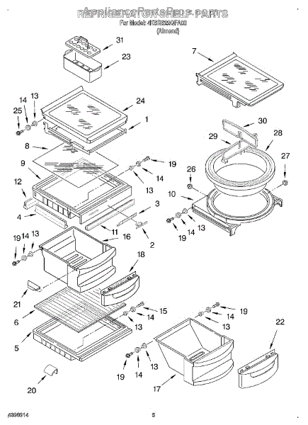Parts for Whirlpool 4KSRS22QFA03: 04 - Refrigerator Shelf Parts